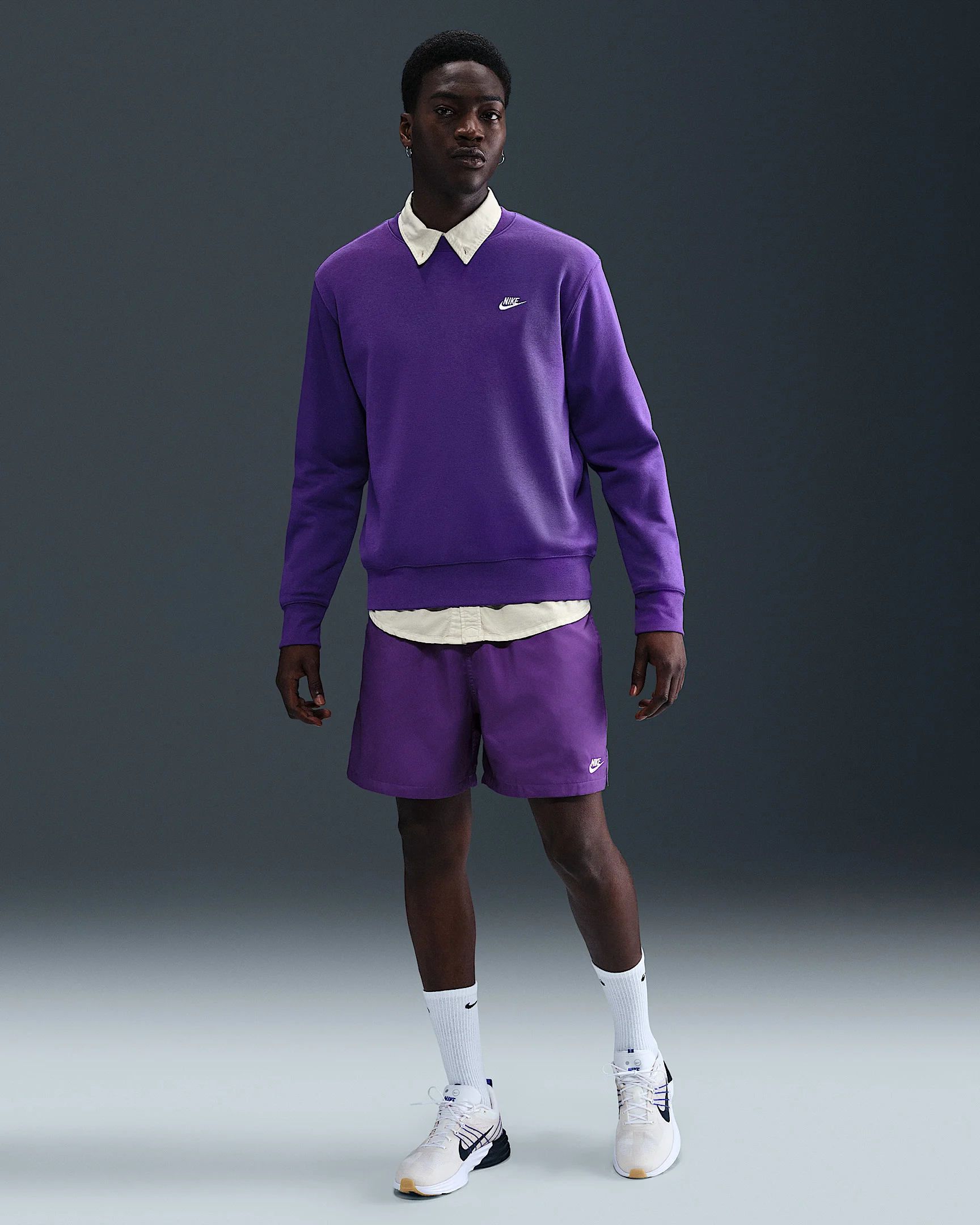 Sporty and versatile, these woven shorts are made for easygoing daily comfort. The fit is designed to hit above-the-knee and feel relaxed through the seat and thighs to keep them from feeling restrictive, especially in warmer weather. Mesh lining helps you stay cool and comfy around town. Pair them up with a tee and your favorite Nike sneakers for a look that gets you out there looking and feeling great. Benefits - Lightweight woven fabric feels smooth and crisp. - Cool mesh lining provides breathable, air-cooled comfort. - Designed to hit above the knee, these relaxed-fitting shorts give you a bit of room through the seat and thighs. - Soft elastic waistband with outer drawcord helps you find a comfy, secure fit. Product Details - 6" inseam - Hand pockets - Back pocket with hook-and-loop closure - Embroidered Nike Futura logo at left thigh - Side vents - 100% polyester - Machine wash - Imported - Shown: Wild Grape/White - Style: FN3307-507 SIZE & FIT Model is wearing size M and is 6′3″189cm Standard fit: easy and traditional Fits large; we recommend ordering a size down