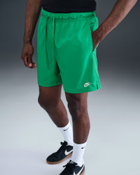 Sporty and versatile, these woven shorts are made for easygoing daily comfort. The fit is designed to hit above-the-knee and feel relaxed through the seat and thighs to keep them from feeling restrictive, especially in warmer weather. Mesh lining helps you stay cool and comfy around town. Pair them up with a tee and your favorite Nike sneakers for a look that gets you out there looking and feeling great. Benefits - Lightweight woven fabric feels smooth and crisp. - Cool mesh lining provides breathable, air-cooled comfort. - Designed to hit above the knee, these relaxed-fitting shorts give you a bit of room through the seat and thighs. - Soft elastic waistband with outer drawcord helps you find a comfy, secure fit. Product Details - 6" inseam - Hand pockets - Back pocket with hook-and-loop closure - Embroidered Nike Futura logo at left thigh - Side vents - 100% polyester - Machine wash - Imported - Shown: Stadium Green/White - Style: FN3307-324 SIZE & FIT Model is wearing size M and is 6′2″188cm Standard fit: easy and traditional Fits large; we recommend ordering a size down
