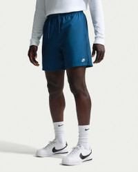 Sporty and versatile, these woven shorts are made for easygoing daily comfort. The fit is designed to hit above-the-knee and feel relaxed through the seat and thighs to keep them from feeling restrictive, especially in warmer weather. Mesh lining helps you stay cool and comfy around town. Pair them up with a tee and your favorite Nike sneakers for a look that gets you out there looking and feeling great. Benefits - Lightweight woven fabric feels smooth and crisp. - Cool mesh lining provides breathable, air-cooled comfort. - Designed to hit above the knee, these relaxed-fitting shorts give you a bit of room through the seat and thighs. - Soft elastic waistband with outer drawcord helps you find a comfy, secure fit. Product Details - 6" inseam - Hand pockets - Back pocket with hook-and-loop closure - Embroidered Nike Futura logo at left thigh - Side vents - 100% polyester - Machine wash - Imported - Shown: Court Blue/White - Style: FN3307-476 SIZE & FIT Model is wearing size M and is 6′0″183cm Standard fit: easy and traditional Fits large; we recommend ordering a size down