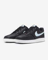 In love with the classic look of '80s basketball but have a thing for the fast-paced culture of today's game? Meet the Nike Court Vision Low. A classic remixed with at least 20% recycled materials by weight, its crisp upper and stitched overlays keep the soul of the original style. The plush, low-cut collar keeps it sleek and comfortable for your world. Benefits - Made with at least 20% recycled material by weight. - Whenever you see the Nike Sunburst or the name Next Nature (NN), you see one more step on our journey toward zero carbon and zero waste. - Using synthetic materials, the design features materials that echo mid-1980s basketball shoes. - Padded, low-cut collar looks sleek and feels great while the perforations on the toe and sides add comfort and breathability. Product Details - Perforations on the toe and sides - Rubber outsole - Shown: Black/White/Glacier Blue - Style: DH2987-006 SIZE & FIT Fits large; we recommend ordering a half size down
