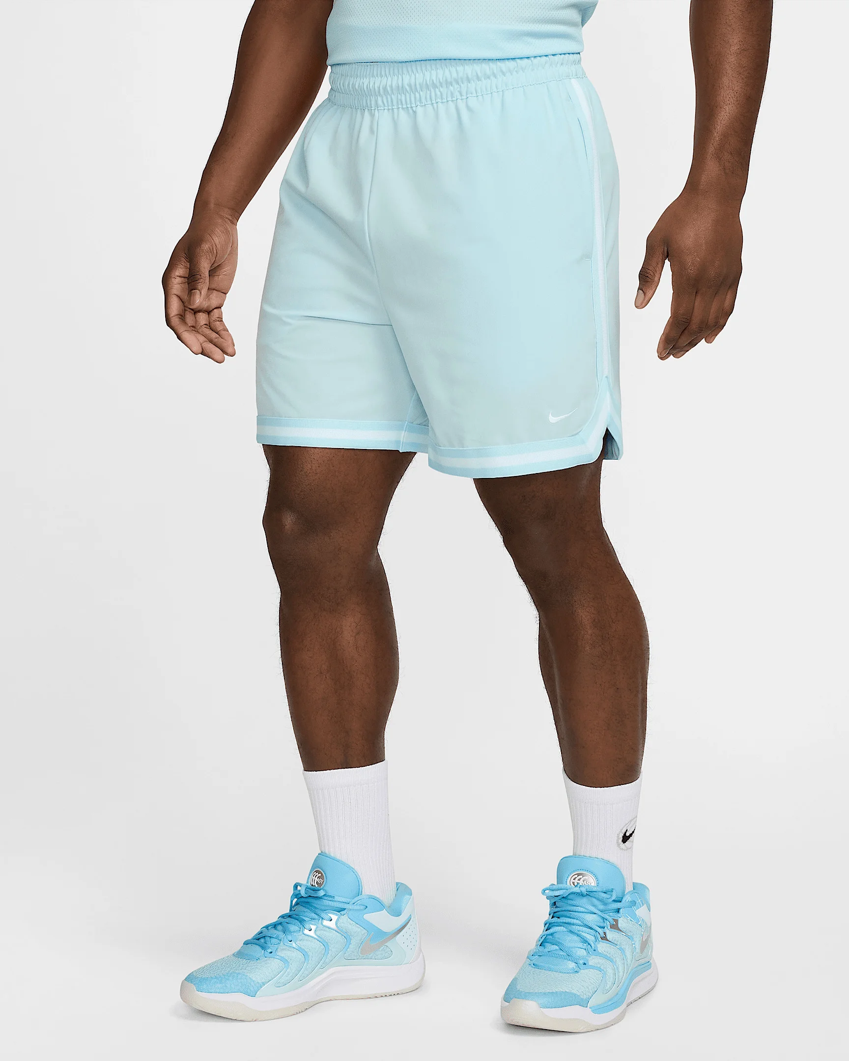 When the shot clock ticks down and the moment for a player to create their legend arrives, champions wear gear that helps them rise to the moment. The DNA 6" Shorts help you stay ready to enter the spotlight with innovative fabrics and performance-driven designs. They're made with smooth durable material that wicks sweat to keep you feeling dry and focused. They even offer a zippered pocket to keep your essentials secure whether you're on the court or off. Remember: champions stay ready. More Benefits - Designed for basketball - 6" inseam - Unlined - Stretchy, sweat-wicking woven fabric - Side pockets and zippered utility pocket large enough for a phone - Elastic waistband with drawcord Product Details - Side vents - Embroidered Swoosh logo - Body: 86% polyester/14% spandex. Mesh: 100% polyester. - Machine wash - Imported - Shown: Glacier Blue/Glacier Blue/White - Style: FN2659-476 SIZE & FIT Model is wearing size M and is 6′1″185cm Standard fit: easy and traditional