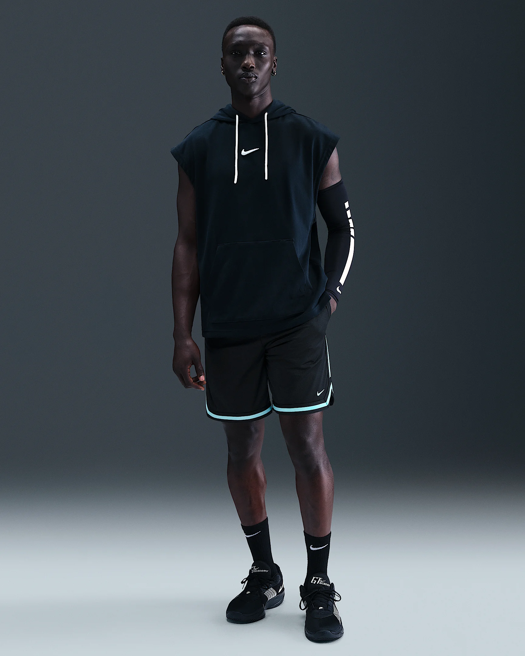 When the shot clock ticks down and the moment for a player to create their legend arrives, champions wear gear that helps them rise to the moment. The DNA Shorts help you stay ready to enter the spotlight with innovative fabrics and performance-driven designs. They're made with lightweight-yet-durable material that wicks sweat to keep you feeling dry and focused. They even offer a zippered pocket to keep your essentials secure whether you're on the court or off. Remember: champions stay ready. More Benefits - Designed for basketball - 8" inseam - Unlined - Lightweight, sweat-wicking fabric with mesh face and smooth interior - Side pockets and zippered utility pocket large enough for a phone - Elastic waistband with drawcord Product Details - Side vents - Embroidered Swoosh logo - 100% polyester - Machine wash - Imported - Shown: Black/Black/Bleached Turquoise - Style: FN2651-014 SIZE & FIT Model is wearing size M and is 6′0″183cm Standard fit: easy and traditional