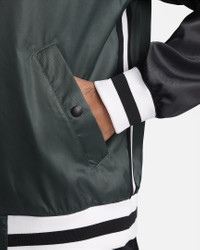 The Nike DNA jacket is inspired by outdoor hoops—from those early days of learning the game on your driveway to playing pickup at the nearby park. Made with a smooth satin shell and breathable lining, this relaxed fit jacket brings that layer of warmth to the court and beyond. Benefits - Woven, satiny fabric provides a smooth, premium feel. - Soft mesh lining offers lightweight breathability. - Repel technology helps your jacket stay dry in wet conditions. - Snap-button pockets help keep your valuables secure. - Snap buttons on the front make the jacket easy to take on and off. Product Details - Embroidered Swoosh logo - Hanger loop - Stripe ribbing on cuffs, neck and hem - Body: 100% polyester. Rib: 92% polyester/8% spandex. Lining: 100% polyester - Machine wash - Imported - Shown: Vintage Green/Black/Black - Style: FN2724-338 SIZE & FIT Model is wearing size M and is 6′0″183cm Loose fit: roomy and relaxed