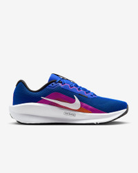 Whether you’re starting your running journey or an expert eager to switch up your pace, the Downshifter 13 is down for the ride. With breathable mesh and an updated internal fit band, it helps you find that extra gear or take that first stride toward chasing down your goals. Product Details - Weight: Approx. 287g/10.1oz (Men's US 10) - Heel-to-toe drop: 10mm - Reflective details - Not intended for use as Personal Protective Equipment (PPE) - Shown: Racer Blue/Hyper Violet/Total Orange/White - Style: FD6454-406 SIZE & FIT Fits small; we recommend ordering a half size up