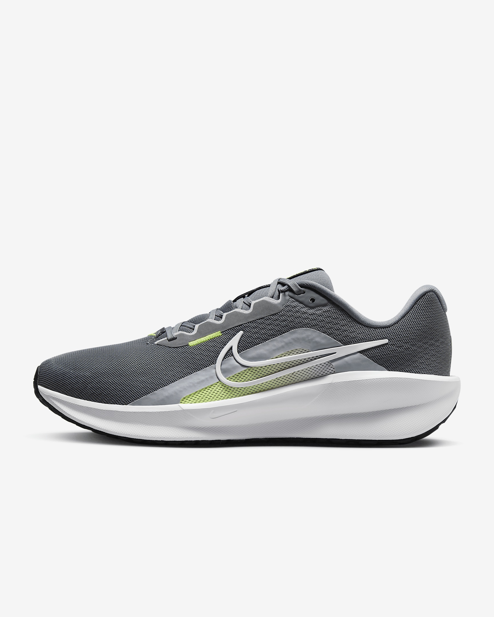 Whether you’re starting your running journey or an expert eager to switch up your pace, the Downshifter 13 is down for the ride. With a revamped upper and cushion and durability, it helps you find that extra gear or take that first stride toward chasing down your goals. Product Details - Reflective details - Not intended for use as Personal Protective Equipment (PPE) - Shown: Anthracite/Black/Volt/White - Style: FD6454-002 SIZE & FIT Fits small; we recommend ordering a half size up