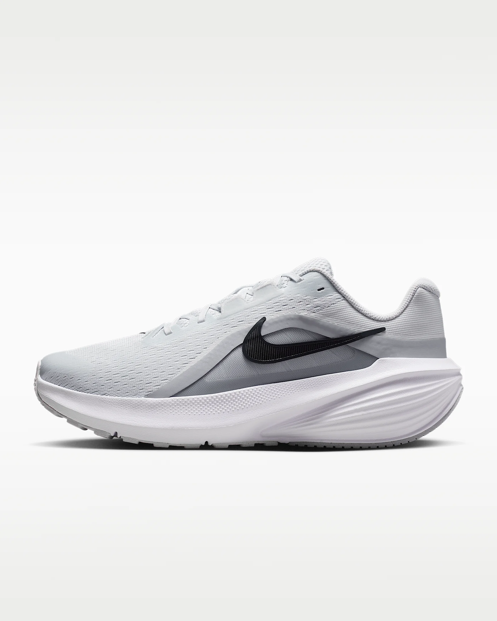 Kick your stride into another gear in the Downshifter 14. We increased the amount of cushioning in the midsole for more comfort and responsiveness than the previous iteration. Plus, the upper is made with an open-hole mesh for optimal breathability and a midfoot band gives you a locked-in feel. Benefits - Engineered open-hole mesh on the upper offers breathability. - We increased the amount of cushioning in the midsole for more comfort and bounce. - Internal fit band offers containment around the midfoot for a locked-in feel. Product Details - Weight Approx.: 358g (Men's US 10) - Heel-to-toe drop: 10mm - Shown: Pure Platinum/Anthracite/Wolf Grey/Black - Style: IB1895-005