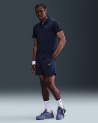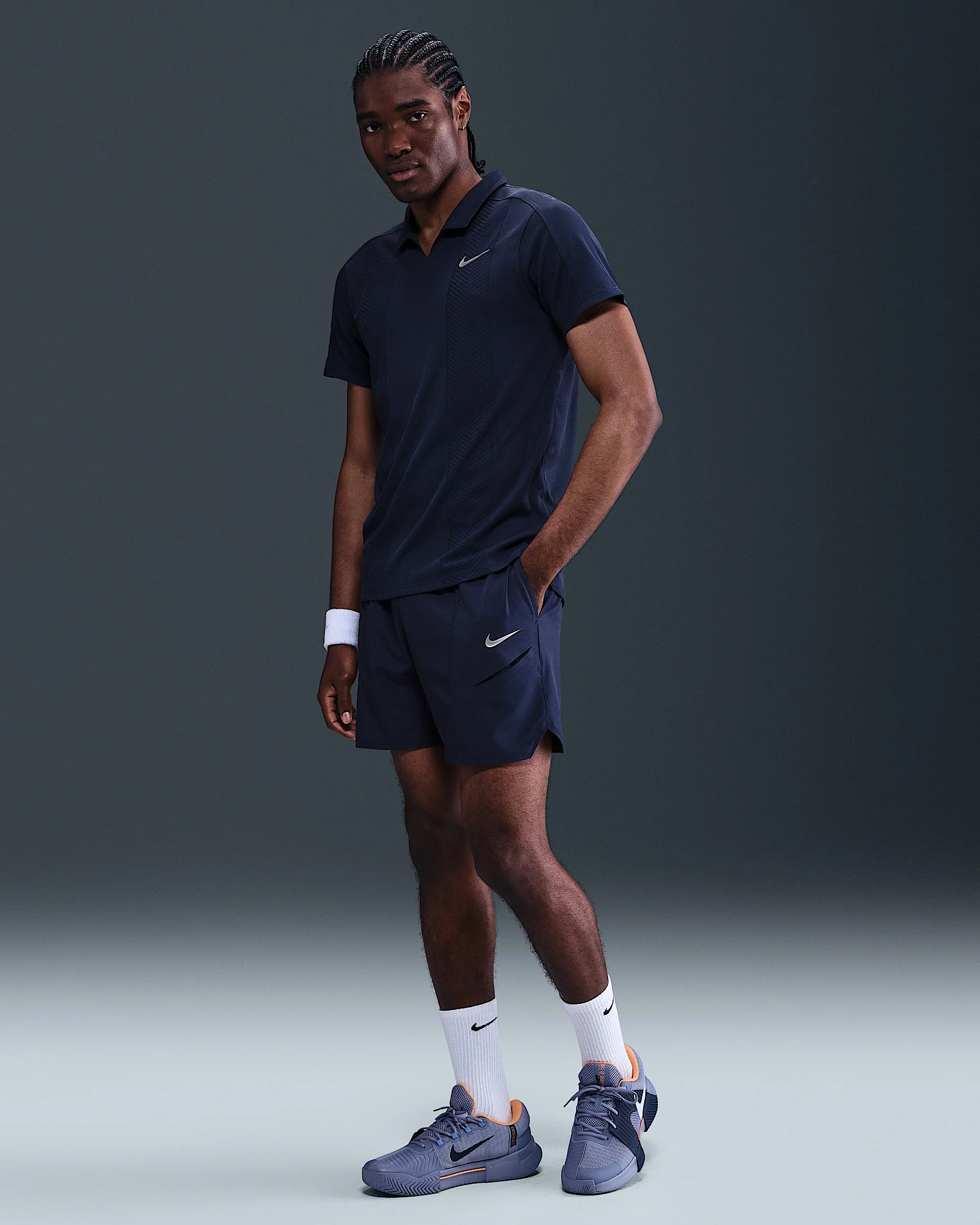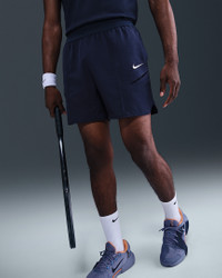 We updated these lightweight shorts with a six-inch inseam, keeping the sweat-wicking fabric and mesh waistband for ventilation and comfort. Our signature ball pocket provides secure, easy-access storage so you’re always ready to serve up the next point. Benefits - Nike Dri-FIT technology moves sweat away from your skin for quicker evaporation, helping you stay dry and comfortable. - Elastic waistband with engineered mesh offers improved breathability and flexibility. - Four-way stretch woven fabric helps you get the most out of your movement on the court. - Bonded hems replace traditional sewn hems to create a smoother fit with less potential for chafing. - Signature slanted pocket helps keep tennis balls secure during play. Product Details - Bonded seams - 6" inseam - 100% polyester - Machine wash - Imported - Shown: Midnight Navy - Style: HM6740-410 SIZE & FIT Model is wearing size M and is 6′2″188cm Standard fit: easy and traditional