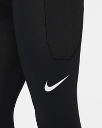 The Nike Dri-FIT Gardien 1 Goalkeeper Pants help you keep your goal safe with hip padding for every diving save. Flexible sweat-wicking fabric keeps you dry when the game heats up. Benefits - Dri-FIT technology helps keep you dry and comfortable. - Articulated padding on the hips provides flexible impact absorption. Product Details - Tight fit for a body-hugging feel - Body/center front lining: 82% polyester/18% spandex. Waistband: 74% nylon/17% spandex/9% polyester. Pad: 100% ethylene vinyl acetate. - Machine wash - Imported - Shown: Black/Black/White - Style: CV0045-010 SIZE & FIT Model is wearing size M and is 6′1″185cm Tight fit: snug and form-fitting