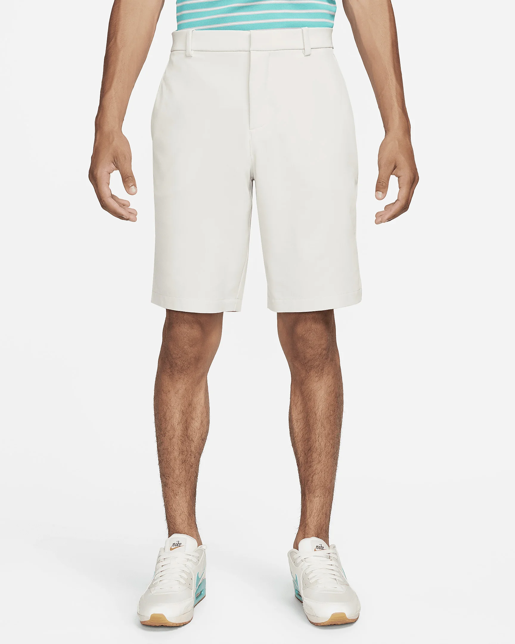 Move comfortably on and off the course in the Nike Dri-FIT Shorts. Stretchy fabric lets you line up your putts without restriction and a tacky waistband helps keep your shirt tucked in while you bend and swing. Benefits - Dri-FIT technology helps keep you dry and comfortable. - Stretchy woven fabric has a subtle texture on the inside to help keep the fabric from clinging to your skin. - Repeating "Nike Golf" graphic on the inner waistband has a slightly tacky texture to help secure a tucked-in shirt. - V-notch in the back of the waistband gives you extra stretch. Product Details - Standard fit for a relaxed, easy feel - Mesh-lined pockets - Snap-button closure - Zippered fly - Body: 89-90% polyester/10-11% spandex. Pocket bags: 100% polyester. - Material percentages may vary. Check label for actual content. - Machine wash - Imported - Shown: Light Orewood Brown/Light Orewood Brown - Style: CU9740-104 SIZE & FIT Model is wearing size 32 and is 6′2″188cm Standard fit: easy and traditional