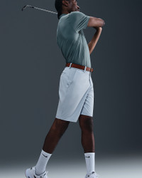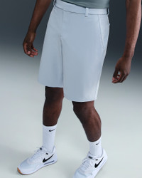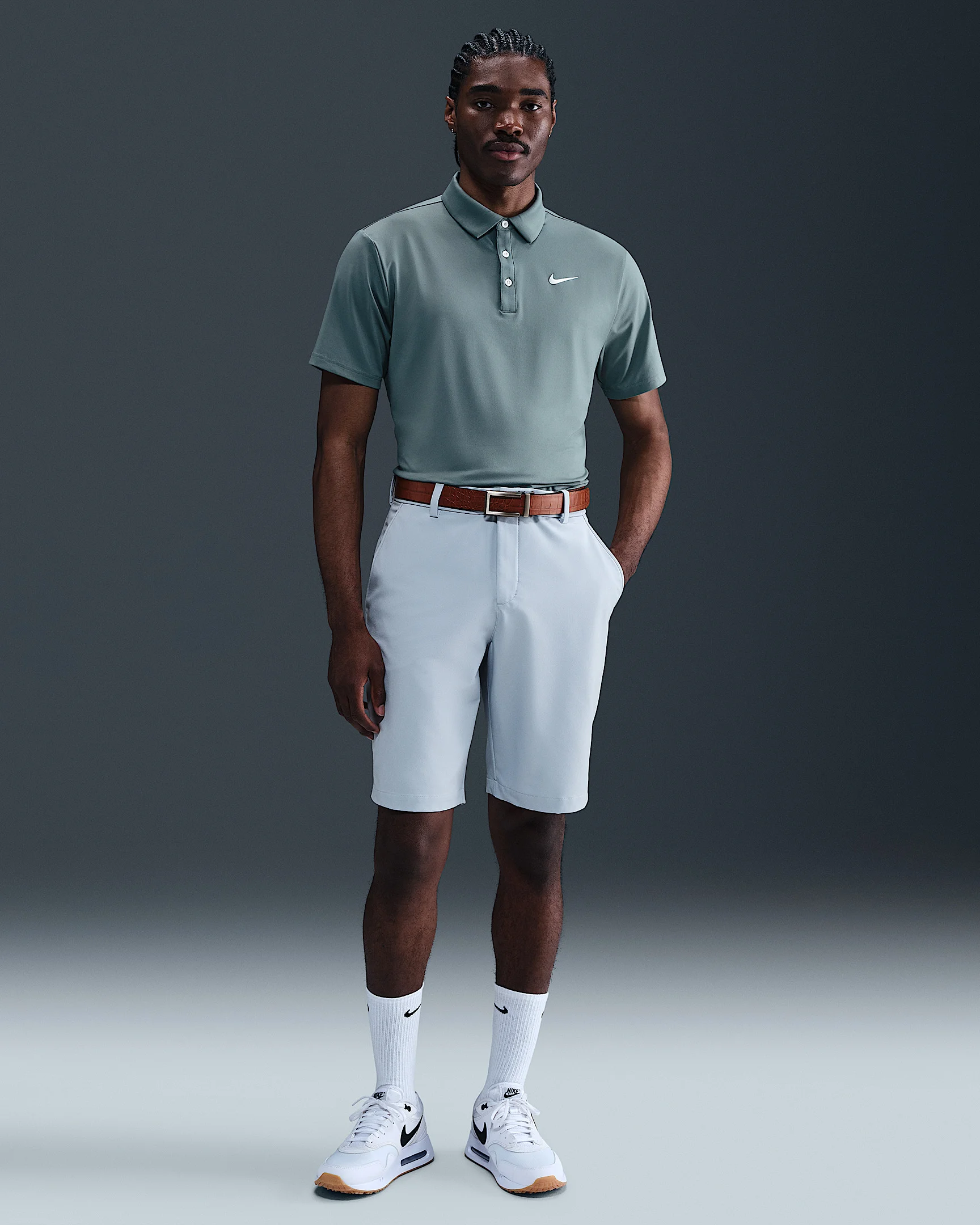 Move comfortably on and off the course in the Nike Dri-FIT Shorts. Stretchy fabric lets you line up your putts without restriction and a tacky waistband helps keep your shirt tucked in while you bend and swing. Benefits - Dri-FIT technology helps keep you dry and comfortable. - Stretchy woven fabric has a subtle texture on the inside to help keep the fabric from clinging to your skin. - Repeating "Nike Golf" graphic on the inner waistband has a slightly tacky texture to help secure a tucked-in shirt. - V-notch in the back of the waistband gives you extra stretch. Product Details - Standard fit for a relaxed, easy feel - Mesh-lined pockets - Snap-button closure - Zippered fly - Body: 89-90% polyester/10-11% spandex. Pocket bags: 100% polyester. - Material percentages may vary. Check label for actual content. - Machine wash - Imported - Shown: Light Armory Blue/Wolf Grey/Light Armory Blue - Style: CU9740-441 SIZE & FIT Model is wearing size 32 and is 6′2″188cm Standard fit: easy and traditional