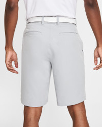 Move comfortably on and off the course in the Nike Dri-FIT Shorts. Stretchy fabric lets you line up your putts without restriction and a tacky waistband helps keep your shirt tucked in while you bend and swing. Benefits - Dri-FIT technology helps keep you dry and comfortable. - Stretchy woven fabric has a subtle texture on the inside to help keep the fabric from clinging to your skin. - Repeating "Nike Golf" graphic on the inner waistband has a slightly tacky texture to help secure a tucked-in shirt. - V-notch in the back of the waistband gives you extra stretch. Product Details - Standard fit for a relaxed, easy feel - Mesh-lined pockets - Snap-button closure - Zippered fly - Body: 89-90% polyester/10-11% spandex. Pocket bags: 100% polyester. - Material percentages may vary. Check label for actual content. - Machine wash - Imported - Shown: Wolf Grey/Wolf Grey - Style: CU9740-012 SIZE & FIT Model is wearing size 32 and is 6′1″185cm Standard fit: easy and traditional