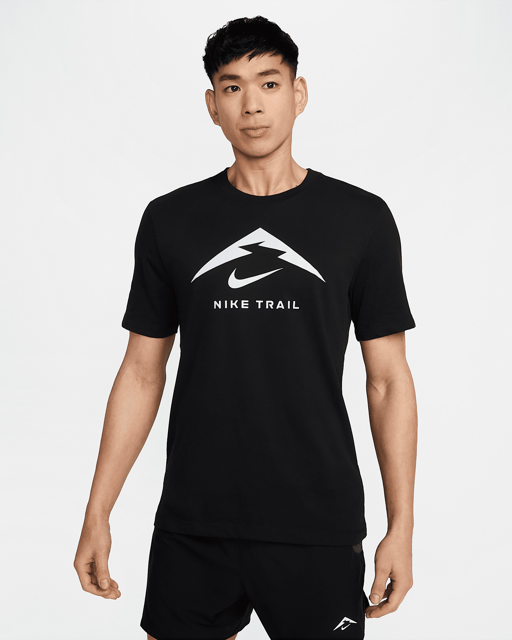 Hit your next off-road run or outdoor journey in the Nike Trail T-Shirt. Made with smooth, sweat-wicking fabric and a relaxed fit, it's designed to help you feel cool and comfortable reaching and surpassing your trail goals. Benefits - Nike Dri-FIT technology moves sweat away from your skin for quicker evaporation, helping you stay dry and comfortable. - Smooth jersey knit fabric is lightweight and breathable. Product Details - 57-59% cotton/41-43% polyester - Material percentages may vary. Check label for actual content. - Machine wash - Imported - Shown: Black/Football Grey - Style: FQ3914-013 SIZE & FIT Model is wearing size M and is 6′2″188cm Big & Tall model is wearing size 2XL and is 6'2"188cm Standard fit: easy and traditional