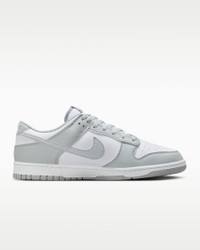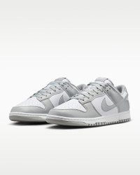 You can always count on a classic. The Dunk Low pairs its iconic color blocking with premium materials and plush padding for game-changing comfort that lasts. The possibilities are endless—how will you wear your Dunks? Benefits - Real and synthetic leather upper softens and gains vintage character with wear. - Foam midsole offers lightweight, responsive cushioning. - Rubber outsole with classic pivot circle adds durable traction and heritage style. Product Details - Padded collar - Perforated toe box - Shown: White/White/Light Smoke Grey - Style: HF5441-105