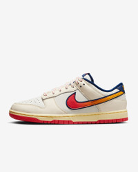 Step out like an all star in this special edition Dunk Low. Bay Area inspired design details pair with premium materials and plush padding for game-changing comfort that lasts. Benefits - Genuine leather upper softens and gains vintage character with wear. - Foam midsole offers lightweight, responsive cushioning. - Rubber outsole with our classic pivot circle adds durable traction and heritage style. Product Details - Padded collar - Perforated toe box - Shown: Pale Ivory/Sail/University Gold/Light Crimson - Style: HV5749-110