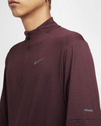 The Nike Element Top gives you soft, smooth coverage that can be worn on its own or as an extra layer. It easily adjusts at the neck and sleeves so you can stay comfortable as you heat up and cool down. Even better, it's made with at least 75% recycled polyester fibers. More Benefits - This product provides UVA and UVB protection from the sun in the areas covered by the garment. To protect exposed areas, the use of good quality sunscreen is recommended. Product Details - Reflective elements - Not intended for use as Personal Protective Equipment (PPE) - 88% polyester/12% spandex - Machine wash - Imported - Shown: Burgundy Crush - Style: DD4756-652 SIZE & FIT Model is wearing size M and is 6′0″183cm Standard fit: easy and traditional