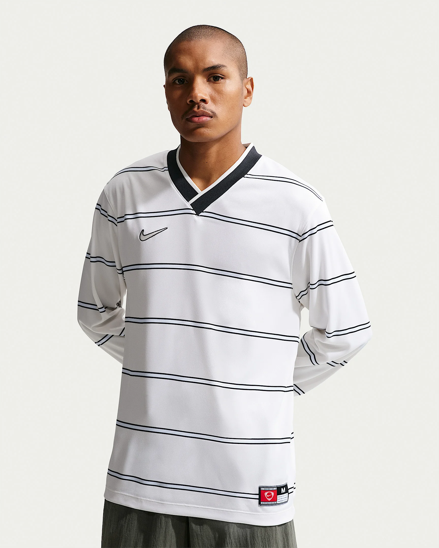Nike took the soccer world by storm 30 years ago. This sweat-wicking top has the same details as those timeless mid-'90s designs, but with the tech to stand up to the modern game. Product Details - Loose fit - Woven jock tag - 100% polyester - Machine wash - Imported - Shown: Summit White/Off Noir/Summit White/Summit White - Style: IF1532-121 SIZE & FIT Model is wearing size M and is 5'10"178cm Loose fit: roomy and relaxed