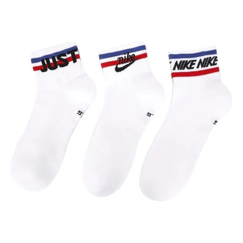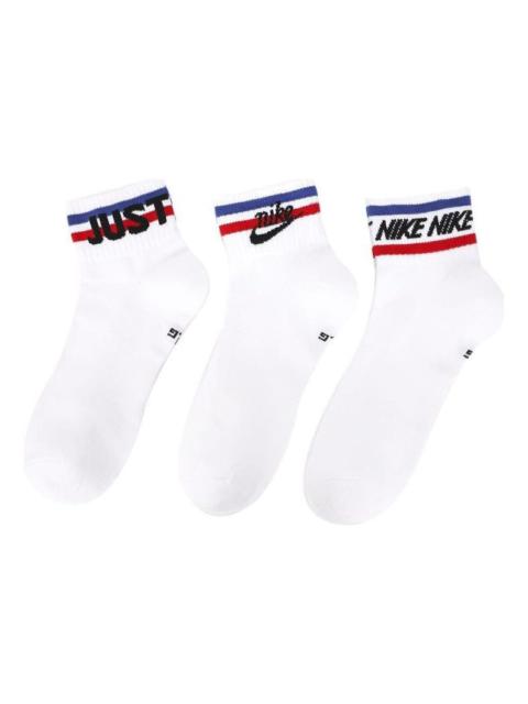 Nike Everyday Ankle Alphabet Logo Pattern Casual Sports Socks 3 Pairs White DX5080-100