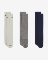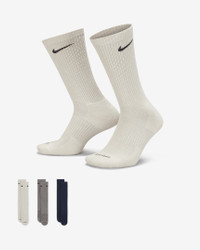 The Nike Everyday Plus Cushioned Socks bring comfort to your workout with extra cushioning under the heel and forefoot and a snug, supportive arch band. Sweat-wicking power and breathability up top help keep your feet dry and cool to help push you through that extra set. Benefits - Cushioning under the forefoot and heel helps soften the impact of your workout. - Dri-FIT technology helps your feet stay dry and comfortable. - Band around the arch feels snug and supportive. - Breathable knit pattern on top adds ventilation. - Reinforced heel and toe are made to last. Product Details - Fabric: 62-69% cotton/29-36% polyester/2% polyurethane - Note: Material percentages may vary depending on color. Check label for actual content. - Machine wash - Imported - Shown: Multi-Color - Style: SX6888-965