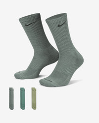 The Nike Everyday Plus Cushioned Socks bring comfort to your workout with extra cushioning under the heel and forefoot and a snug, supportive arch band. Sweat-wicking power and breathability up top help keep your feet dry and cool to help push you through that extra set. Benefits - Cushioning under the forefoot and heel helps soften the impact of your workout. - Dri-FIT technology helps your feet stay dry and comfortable. - Band around the arch feels snug and supportive. - Breathable knit pattern on top adds ventilation. - Reinforced heel and toe are made to last. Product Details - Fabric: 62-69% cotton/29-36% polyester/2% polyurethane - Note: Material percentages may vary depending on color. Check label for actual content. - Machine wash - Imported - Shown: Multi-Color - Style: SX6888-935