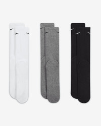 The Nike Everyday Plus Cushioned Socks bring comfort to your workout with extra cushioning under the heel and forefoot and a snug, supportive arch band. Sweat-wicking power and breathability up top help keep your feet dry and cool to help push you through that extra set. Benefits - Cushioning under the forefoot and heel helps soften the impact of your workout. - Dri-FIT technology helps your feet stay dry and comfortable. - Band around the arch feels snug and supportive. - Breathable knit pattern on top adds ventilation. - Reinforced heel and toe are made to last. Product Details - Fabric: 62-69% cotton/29-36% polyester/2% polyurethane - Note: Material percentages may vary depending on color. Check label for actual content. - Machine wash - Imported - Shown: Multi-Color - Style: SX6888-964