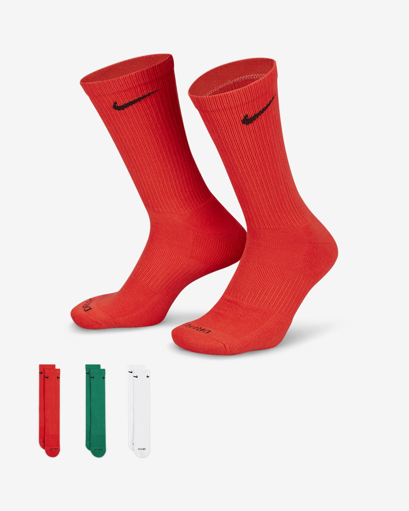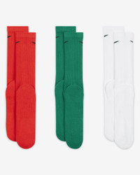 The Nike Everyday Plus Cushioned Socks bring comfort to your workout with extra cushioning under the heel and forefoot and a snug, supportive arch band. Sweat-wicking power and breathability up top help keep your feet dry and cool to help push you through that extra set. Benefits - Cushioning under the forefoot and heel helps soften the impact of your workout. - Dri-FIT technology helps your feet stay dry and comfortable. - Band around the arch feels snug and supportive. - Breathable knit pattern on top adds ventilation. - Reinforced heel and toe are made to last. Product Details - Fabric: 62-69% cotton/29-36% polyester/2% polyurethane - Note: Material percentages may vary depending on color. Check label for actual content. - Machine wash - Imported - Shown: Multi-Color - Style: SX6888-929