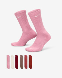The Nike Everyday Plus Cushioned Socks bring comfort to your workout with extra cushioning under the heel and forefoot and a snug, supportive arch band. Sweat-wicking power and breathability up top help keep your feet dry and cool to help push you through that extra set. Benefits - Cushioning under the forefoot and heel helps soften the impact of your workout. - Dri-FIT technology helps your feet stay dry and comfortable. - Band around the arch feels snug and supportive. - Breathable knit pattern on top adds ventilation. - Reinforced heel and toe are made to last. Product Details - Fabric: 61-67% cotton/30-36% polyester/2% spandex/1% nylon - Machine wash - Imported - Note: Material percentages may vary slightly depending on color. Check label for actual content. - Shown: Multi-Color - Style: SX6897-936