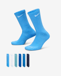The Nike Everyday Plus Cushioned Socks bring comfort to your workout with extra cushioning under the heel and forefoot and a snug, supportive arch band. Sweat-wicking power and breathability up top help keep your feet dry and cool to help push you through that extra set. Benefits - Cushioning under the forefoot and heel helps soften the impact of your workout. - Dri-FIT technology helps your feet stay dry and comfortable. - Band around the arch feels snug and supportive. - Breathable knit pattern on top adds ventilation. - Reinforced heel and toe are made to last. Product Details - Fabric: 61-67% cotton/30-36% polyester/2% spandex/1% nylon - Machine wash - Imported - Note: Material percentages may vary slightly depending on color. Check label for actual content. - Shown: Multi-Color - Style: SX6897-937