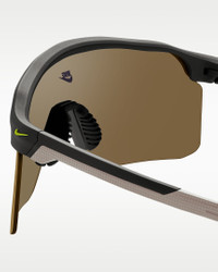 The Nike Expedition Shield perfectly balances sport and style, inspired by the intersection where both paths converge— like your own dynamic lifestyle. Its expansive wrap lens, minimalist top bar, and textured grip nose pad are designed to complement your versatility. With Nike Max+ vision, experience distraction-free clarity for wherever the day may lead you. Benefits - Frame size: 61mm lens width; 18mm bridge width; 140mm temple length - Nike Terrain Tint boosts contrast, enhancing shadows to reveal every detail in the path ahead. - Nike Max Optics Pro reduces light reflection and provides precisie vision with hydro-oleophobic coatings to repel water and oil for a clearer view of what’s ahead. - 5-base curved shield offers medium coverage with moderate peripheral light blockage. - Soft, injected rubber inlay nose pads provide stability and grip. Product Details - Injected frame material is derived from at least 40% castor bean oil. - 100% UVA/UVB protection. - Shown: Sequoia - Style: IU4700X-355