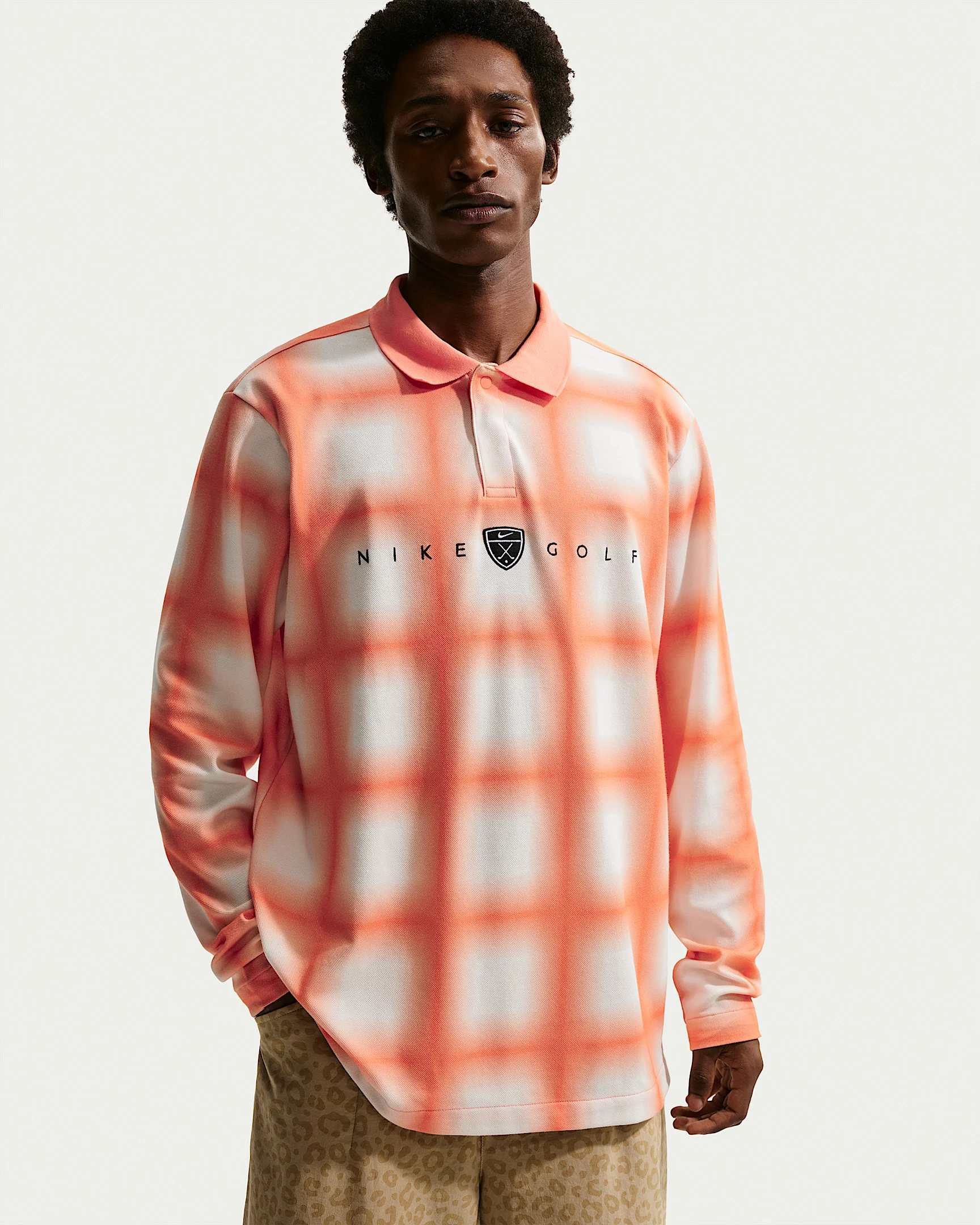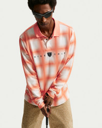 A golf staple reimagined, this relaxed-fit polo uses breathable knit fabric uses sweat-wicking tech to help you stay warm without overheating while you play. Reaching into the vault, this allover Scottish tartan design is bonded to the fabric for a distraction-free feel and look that celebrates our love of golf and the sport's birthplace. Benefits - The tartan's back. Designed in Scotland to help connect Nike Golf products to the home of golf, this tartan design celebrates the rich history of the game we all love. - Nike Dri-FIT technology moves sweat away from your skin for quicker evaporation, helping you stay dry and comfortable. - Three-button placket secures with snap top button. Product Details - Lightweight, breathable knit fabric - Ribbed collar - Snap button - Embroidered graphics - 59% cotton/41% polyester - Machine wash - Imported - Shown: Orange Frost/Orange Frost - Style: II0772-835 SIZE & FIT Model is wearing size M and is 6′1″185cm Loose fit: roomy and relaxed