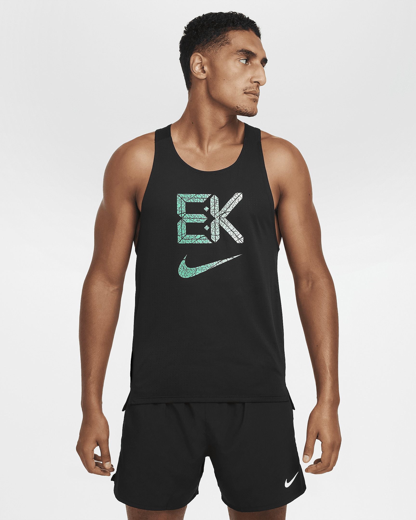 This singlet has a classic fit with breathable, sweat-wicking mesh to help you feel light and cool on your running journey. Benefits - Nike Dri-FIT technology moves sweat away from your skin for quicker evaporation, helping you stay dry and comfortable. - Open-hole mesh fabric is lightweight and breathable. Product Details - 100% polyester - Machine wash - Imported - Shown: Black/Stadium Green - Style: FV9610-010 SIZE & FIT Sm fit: sleek and tailored