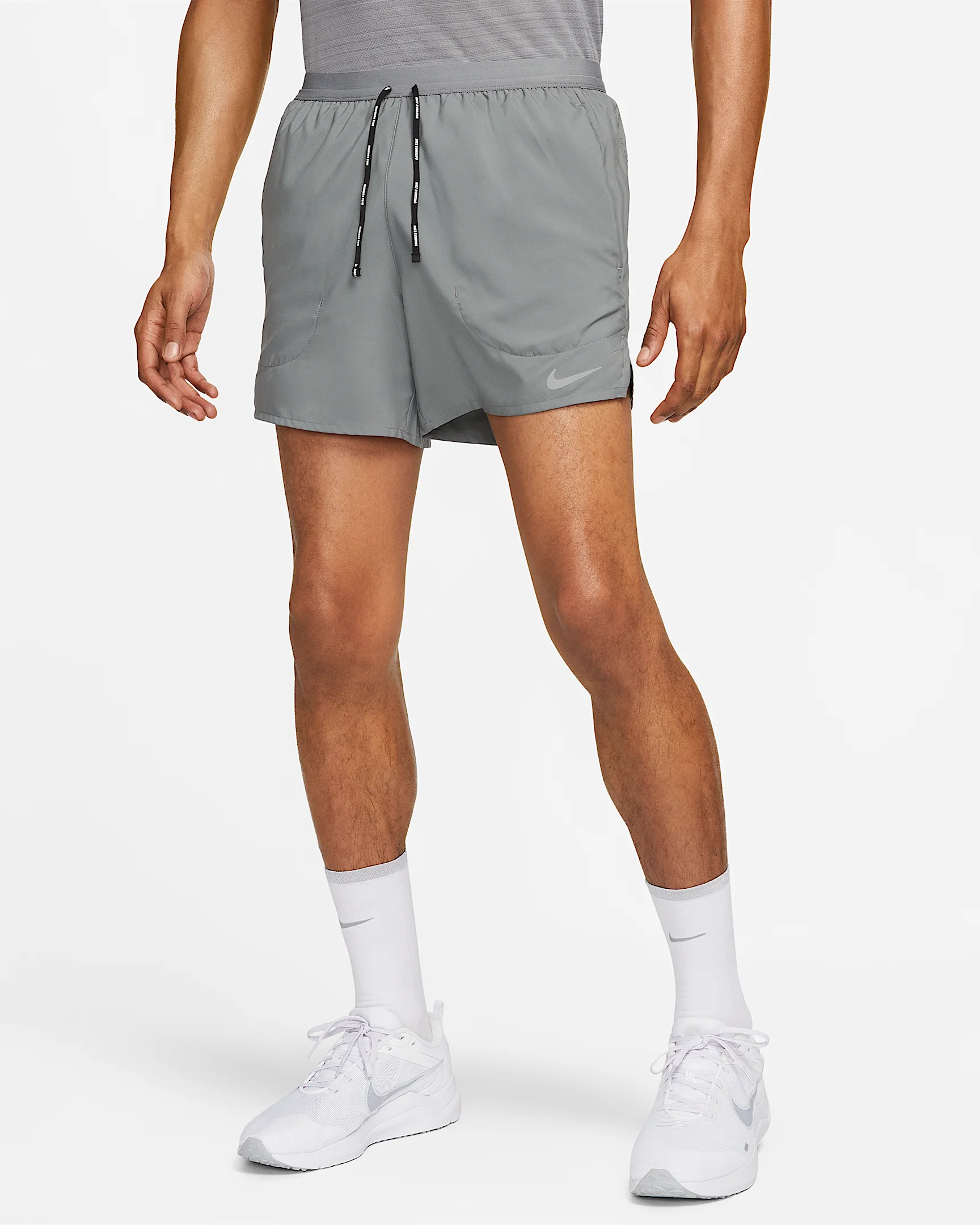 The Nike Flex Stride Shorts have an all-new woven fabric and enhanced breathability in high-sweat areas. Their soft brief liner provides secure support where you need it most. Convenient pockets stash items on the run. This product is made with at least 50% recycled polyester fibers. More Benefits - Breathable fabric helps you stay dry and cool. - Dri-FIT technology helps you stay dry, comfortable and focused. - Nike Flex fabric stretches with your body. Product Details - Standard fit for a relaxed, easy feel - 5" inseam with knit brief liner - Reflective elements at the side hems - Reflective Swoosh at the left leg and reflective bars - Heathered Colors: Body: 100% polyester. Panels: 94% polyester/6% spandex. Waistband: 66% nylon/34% spandex. Lining: 89% recycled polyester/11% spandex. Side pockets: 100% recycled polyester. - Solid Colors: Body: 100% recycled polyester. Panels: 94% polyester/6% spandex. Waistband: 66% nylon/34% spandex. Lining: 89% recycled polyester/11% spandex. - Machine wash - Imported - Not intended for use as Personal Protective Equipment - Shown: Smoke Grey/Smoke Grey - Style: CJ5453-085 SIZE & FIT Model is wearing size M and is 6′2″188cm Standard fit: easy and traditional