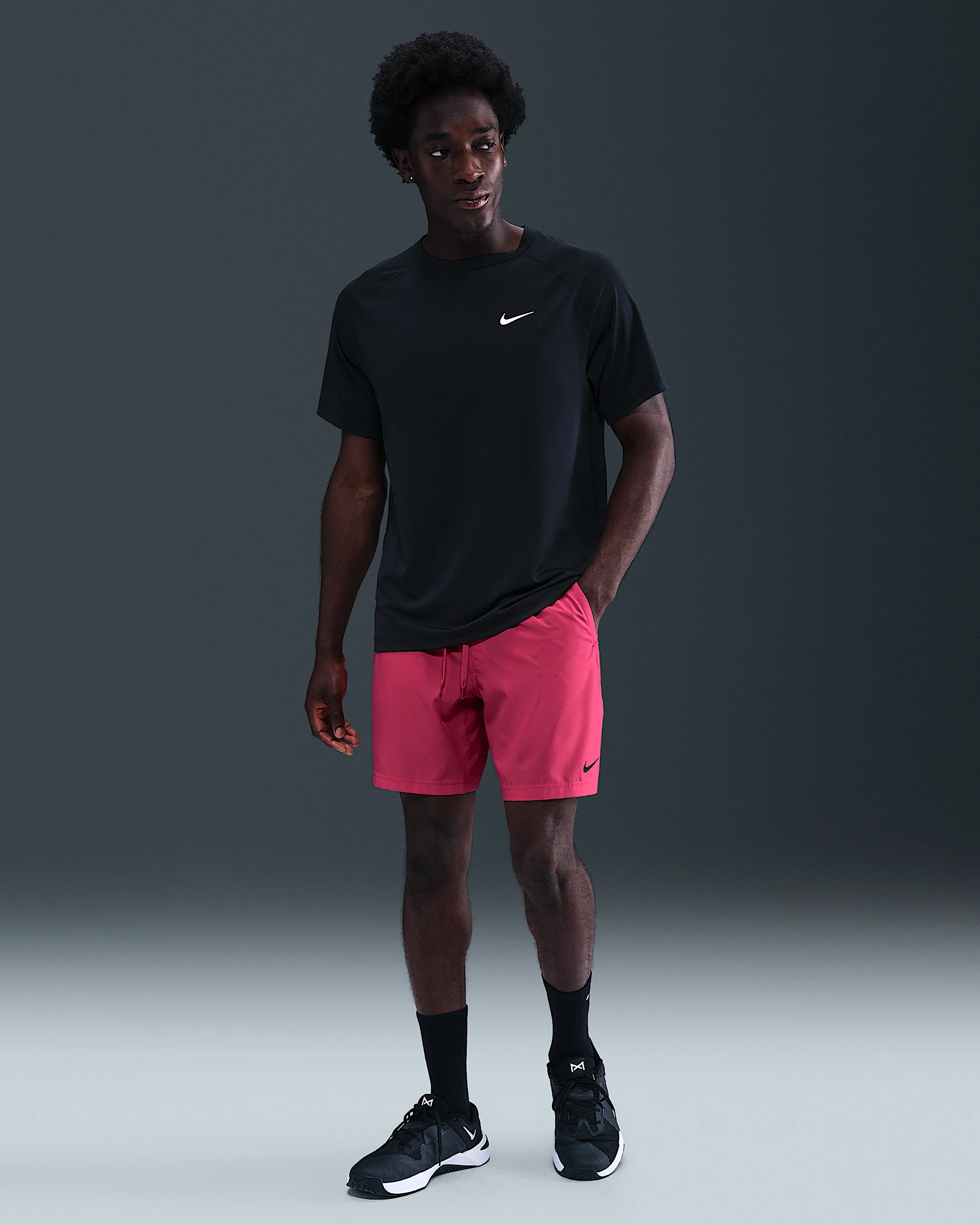 Designed for running, training and yoga, these versatile shorts are built to handle those days when you need to shake up your exercise routine. Our sweat-wicking Form Shorts offer a smooth feel and minimal fit made to keep up with your moves, from tough dead lifts to sweaty hot yoga classes. More Benefits - Designed for Running, Yoga and Training - Length: 7" - Liner: Unlined - Fabric: Lightweight woven - Storage: Side pockets - Waistband: Low profile with drawcord Product Details - 100% polyester - Machine wash - Imported - Shown: Rush Pink/Black - Style: DV9857-666 SIZE & FIT Model is wearing size M and is 6′0″183cm Standard fit: easy and traditional