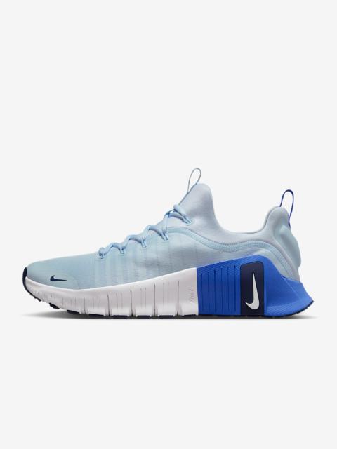 From power lifts to ladders, from grass blades to grainy platforms, from the turf to the track your workout has a certain purpose, a specific focus. The Free Metcon 6 supports every grunt, growl and “got it!” We added even more forefoot flexibility to our most adaptable trainer and reinforced the heel with extra foam. That means more freedom for dynamic movements during plyos and cardio classes, plus the stable base you need for weights. More Benefits - Multi-surface traction pattern is made for any workout surface and activity. - Comfortable inner sleeve increases ankle support and provides a more seamless fit. Product Details - Shown: Denim Turquoise/Black/Vast Grey/White - Style: FJ7127-400