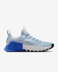 From power lifts to ladders, from grass blades to grainy platforms, from the turf to the track your workout has a certain purpose, a specific focus. The Free Metcon 6 supports every grunt, growl and “got it!” We added even more forefoot flexibility to our most adaptable trainer and reinforced the heel with extra foam. That means more freedom for dynamic movements during plyos and cardio classes, plus the stable base you need for weights. More Benefits - Multi-surface traction pattern is made for any workout surface and activity. - Comfortable inner sleeve increases ankle support and provides a more seamless fit. Product Details - Shown: Blue Tint/Comet Blue/Midnight Navy/White - Style: FJ7127-403
