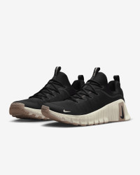 From power lifts to ladders, from grass blades to grainy platforms, from the turf to the track your workout has a certain purpose, a specific focus. The Free Metcon 6 supports every grunt, growl and “got it!” We added even more forefoot flexibility to our most adaptable trainer and reinforced the heel with extra foam. That means more freedom for dynamic movements during plyos and cardio classes, plus the stable base you need for weights. More Benefits - Multi-surface traction pattern is made for any workout surface and activity. - Comfortable inner sleeve increases ankle support and provides a more seamless fit. Product Details - Shown: Black/Gum Light Brown/Coconut Milk - Style: FJ7127-010