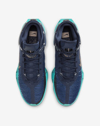 How high do you want to fly? Get off the ground quicker in a design that helps you hover and hold your own in the air when the action goes vertical. If you’re a shooter trying to add lift to your jumper, a skyscraper hoping to float among the stars, or a ground bound beast trying to beat your opponent to that rebound off the rim, this shoe can add an element of explosiveness to your game. The bounce is unlike anything you’ve felt before, and the landing is cushioned, helping you spring back skyward once you hit the ground. More Benefits - Lacing directly through the medial and lateral webbing loops adds forefoot support. - Engineered mesh provides lightweight, breathable comfort and containment. Product Details - Shown: Obsidian/Dusty Cactus/Midnight Navy/Metallic Red Bronze - Style: DJ9431-401