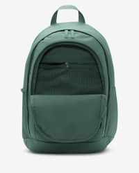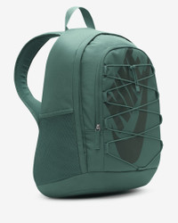 The Nike Hayward Backpack is a new twist on an old favorite with plenty of room for your gear. The durable design has webbing at the front to hold a jacket and side pockets for a water bottle. Benefits - Fits most 15" laptops. - Polyester fabric is densely woven for lasting durability. - Adjustable shoulder straps create a comfortable carrying experience. - Large main compartment and internal organizational pockets give you plenty of storage space. - Haul loop at the top makes it easy to hang the backpack. - Front bungee system with cinch lets you quickly stash a jacket or other essentials. Product Details - 19" H x 13" W x 9" D - 26L - Chest strap - Side pockets for water bottle storage - 100% polyester - Spot clean - Imported - Shown: Bicoastal/Bicoastal/Vintage Green - Style: DV1296-361