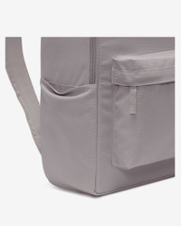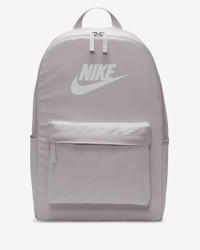 Take your gear to go with the Nike Heritage Backpack. Its spacious main compartment features a sleeve that holds up to a 15" laptop, so your computer is never out of reach. 2 zippered accessories pockets help keep your gear organized and easy to grab. This product is made with at least 65% recycled polyester fibers. Benefits - The extra zipper compartments help keep you organized, add convenience and secure your keys, wallet and phone. - Densely woven polyester provides heavyweight support. - The shoulder straps and back are padded for extra comfort. Product Details - Haul handle - 17" H x 12" W x 6" D - 25 L - 100% polyester - Spot clean - Imported - Shown: Platinum Violet/Platinum Violet/Summit White - Style: DC4244-019