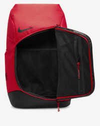Take your hoops game to the next level. Plenty of storage helps keep your gear organized, from its spacious main compartment to the zippered pockets that store your small essentials. What makes it a slam dunk? A chest strap combined with air units for cushioning on the shoulder straps that provide extra comfort, so it's here to game all day. Benefits - Side pockets hold a water bottle or other small essentials. - Haul loop gives you an alternate carrying option. - Padded shoulder straps are adjustable for a comfortable fit. - Stabilizing chest strap distributes the weight of the backpack, helping you stay comfortable during extended wear. Product Details - 19" H x 11" W x 9" D - 100% polyester - Spot clean - Imported - Shown: University Red/Black/Black - Style: DX9786-657