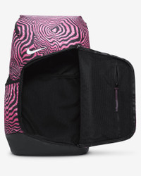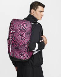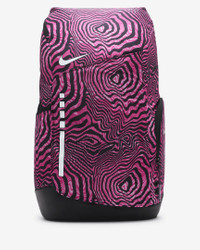 Help raise awareness for the Kay Yow Cancer Fund and make a positive impact on and off the hardwood. The Nike Hoops Elite Backpack features plenty of storage to help keep your gear organized and air units in the shoulder straps to help provide comfort. Benefits - Side pockets hold a water bottle or other small essentials. - Padded shoulder straps are adjustable for a comfortable fit. - Densely woven polyester provides heavyweight support. - Stabilizing chest strap distributes the weight of the backpack, helping you stay comfortable during extended wear. Product Details - 19" H x 11" W x 9" D - Haul handle - 100% polyester - Spot clean - Imported - Shown: Black/Pinksicle/White - Style: HF6798-010