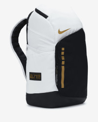 Take your hoops game to the next level. Plenty of storage helps keep your gear organized, from its spacious main compartment to the zippered pockets that store your small essentials. What makes it a slam dunk? A chest strap combined with air units for cushioning on the shoulder straps that provide extra comfort, so it's here to game all day. Benefits - Side pockets hold a water bottle or other small essentials. - Haul loop gives you an alternate carrying option. - Padded shoulder straps are adjustable for a comfortable fit. - Stabilizing chest strap distributes the weight of the backpack, helping you stay comfortable during extended wear. Product Details - 19" H x 11" W x 9" D - 100% polyester - Spot clean - Imported - Shown: White/Black/Metallic Gold - Style: DX9786-100