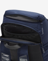 Take your hoops game to the next level. Plenty of storage helps keep your gear organized, from its spacious main compartment to the zippered pockets that store your small essentials. What makes it a slam dunk? A chest strap combined with air units for cushioning on the shoulder straps that provide extra comfort, so it's here to game all day. Benefits - Side pockets hold a water bottle or other small essentials. - Haul loop gives you an alternate carrying option. - Padded shoulder straps are adjustable for a comfortable fit. - Stabilizing chest strap distributes the weight of the backpack, helping you stay comfortable during extended wear. Product Details - 19" H x 11" W x 9" D - 100% polyester - Spot clean - Imported - Shown: Midnight Navy/Iron Grey/Iron Grey - Style: DX9786-410
