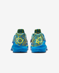 The KD 4 brings a lightweight, low-profile build made of smooth synthetic leather and airy textiles. Its signature wrap-around strap adds containment while forefoot Air Zoom cushioning provides speed, control and bounce. Benefits - Synthetic leather and textile upper is breathable and durable. - Hook-and-loop strap wraps around the midfoot for containment. - Snappy and responsive, Air Zoom cushioning helps provide a quick-off-the-ground sensation. - Rubber outsole gives you excellent grip. Product Details - Shown: Photo Blue/Tour Yellow/Lemon Twist - Style: FZ5916-400