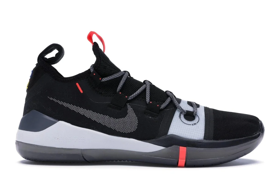 The Nike x Kobe AD Black Multi-Color is part of the Kobe Bryant shoe collection. it comes in a black colorway with a multicolored blend of colors. The upper of the Kobe AD Black Multi-Color is made with a combination of materials, including textile, synthetic, and leather. This provides a durable and supportive fit that is breathable and lightweight, allowing for maximum performance and comfort during intense gameplay. The shoe features a Mamba graphic on the tongue, paying tribute to Kobe Bryant. The outsole is made with a pattern of flexible grooves and a multi-directional traction pattern, providing excellent grip and traction on the court. We think that one of the notable features of the Nike x Kobe AD Black Multi-Color is the custom lacing system. The system features a custom lacing system that consists of thin, high-strength cables made of Flywire technology. The sneaker was released on September 1st, 2018 at a retail price of $140. - Style AV3555-001 - Colorway Black/Multi-Color - Retail Price 140 - Release Date 2018-09-01 - Featured false - Product Line Nike Kobe