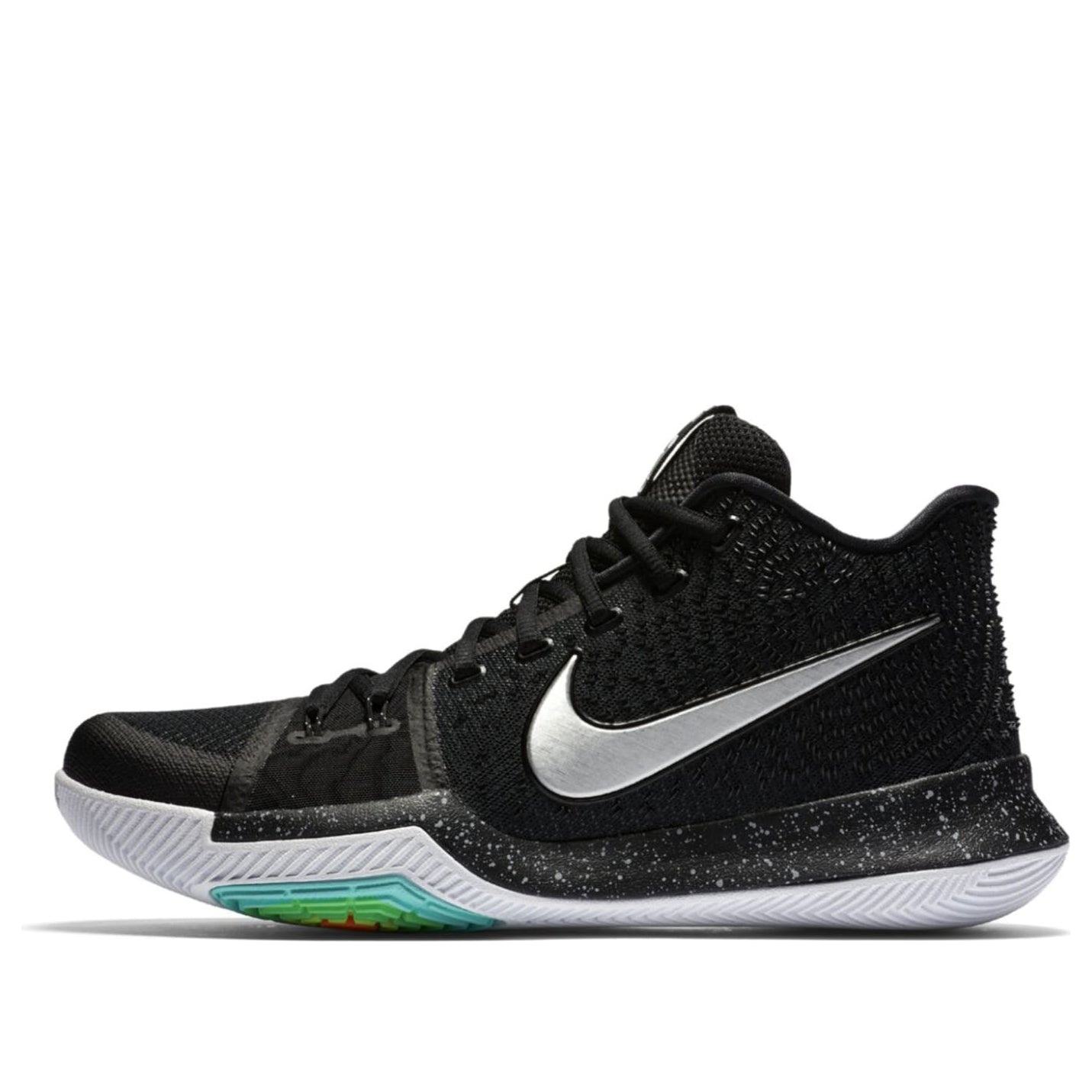 PRODUCT INFORMATION Model No: 852396-018 Closure: Lacing Release Date: 2016-12-25 Upper Material: Leather Style: Sports Colorway: Black/White Heel Type: Flat heel Toe Type: Round Toe Upper: Mid top Sole Material: Rubber Sole Functionality: Supportive/Cushioning Season: All Season Color: black Series: Kyrie Irving Sub Series: Kyrie 3 Occasion: basketball