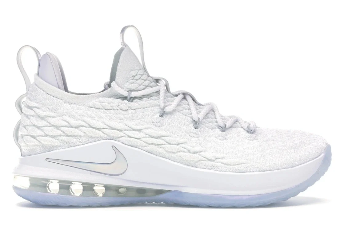 Elevate your game with the Nike LeBron 15 Low "White Metallic Silver," a sneaker that combines the prowess of LeBron James with sleek, low-top style. This version brings an air of sophistication to the court, with a minimalist colorway and maximalist performance.The white and metallic silver palette is a clean canvas that showcases the wearer's moves, while the advanced cushioning system delivers LeBron-level impact protection and responsiveness. It's the epitome of power in a refined package.Hitting the shelves on March 31, 2018, for $150, the "White Metallic Silver" has been a popular choice for players seeking a blend of style and high-performance technology. - Style AO1755-100 - Colorway White/Metallic Silver-White - Retail Price 150 - Release Date 2018-03-31 - Featured false - Product Line Nike LeBron