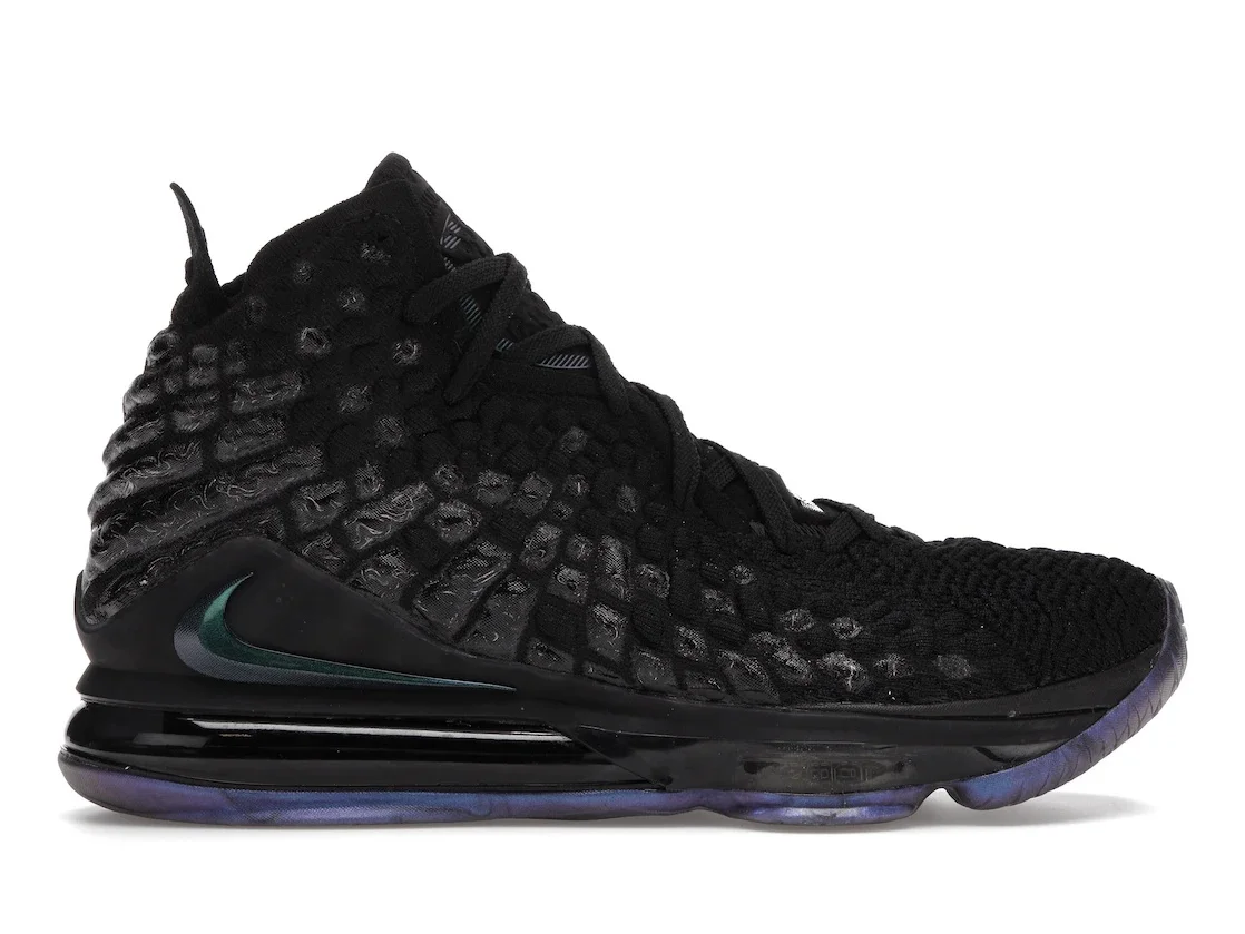 The Nike LeBron 17 Global Currency comes in a black color scheme. The Global Currency Nike LeBron 17 has an upper that is constructed with a mixture of durable materials, including Battleknit fabric, leather overlays, and TPU embellishments. The midsole is equipped with Nike's inventive cushioning technology, which combines Zoom Air and Max Air units to provide responsiveness, impact protection, and energy return. The sneaker's rubber outsole features a multi-directional traction pattern to ensure stability and traction. The shoe's design is completed with a backward Nike Swoosh on one side. What we enjoy about the Nike LeBron 17 Global Currency is its global currency-inspired design concept. The sneaker pays homage to different currencies from around the world, featuring graphic elements and details inspired by various banknotes and symbols. This theme adds a distinctive and culturally diverse touch to the shoe's overall aesthetic. The Nike LeBron 17 Global Currency was released on December 13, 2019 and sold for a retail price of $200. - Style BQ3177-001/BQ3178-001 - Colorway Black/Black - Retail Price 200 - Release Date 2019-12-13 - Featured false - Product Line Nike LeBron