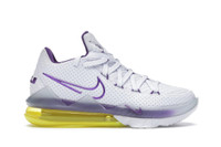 The Nike LeBron 17 Low Lakers is a low-cut boot with a snug fit that pays homage to LeBron James’ third NBA team, the LA Lakers, by taking up the franchises’ traditional colors, white, voltage purple, and dynamic yellow. It features a clean white perforated base upper contrasted by hints of purple on the Swooshes, lace loops, and heel/tongue stitching. It also boasts a Max Air Unit beneath the heel to provide foot support and shock absorption, a soft foam pod dyed yellow under the Max Air Unit to provide cushioning, and a rubber outsole designed for flexibility and traction. The Nike Lebron 17 Low Lakers were released on 14th May 2020. Initially, this basketball sneaker retailed at $170. - Style CD5007-102/CD5006-102 - Colorway White/Voltage Purple-Dynamic Yellow - Retail Price 170 - Release Date 2020-05-14 - Featured false - Product Line Nike LeBron