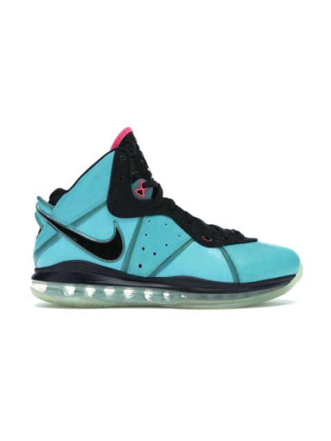 The Nike LeBron 8 South Beach is an iconic basketball sneaker released as part of LeBron James' line of sneakers with Nike. It is known for its vibrant colorway and performance features. The shoes have a striking aesthetic characterized by a vibrant mix of teal, pink, and black, a combination which gives the shoe a distinctive and eye-catching appearance. The upper is constructed using a combination of leather and synthetic materials and features Flywire technology, which provides a supportive structure allowing for a more secure fit. As for the sole unit, it has a transparent midsole with a visible air unit and an icy green outsole. One thing we love about the Nike LeBron 8 South Beach is the cushioning technologies added to improve comfort. They have a full-length air unit that offers impact absorption and responsive cushioning. The shoes were released on the 16th of October, 2010, retailing at $160. - Style 417098-401 - Colorway Retro/Black-Pink Flash-Filament Green - Retail Price 160 - Release Date 2010-10-16 - Featured false - Product Line Nike LeBron