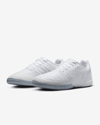 The Nike Lunargato II is ideal for the small-sided game. Soft leather at the forefoot has a smooth, natural feel for precision touch. Cushioning in the midsole feels springy and responsive, while rubber tread gives you traction for quick cuts on indoor surfaces. Benefits - Mesh panels provide breathability. - Rubber sole creates multidirectional traction on indoor/court surfaces. Product Details - For use on street, court and indoor surfaces - Cushioned insole - Shown: White/Chrome - Style: 580456-105 SIZE & FIT Snug fit; if you prefer a sghtly looser fit, we recommend ordering a half-size up